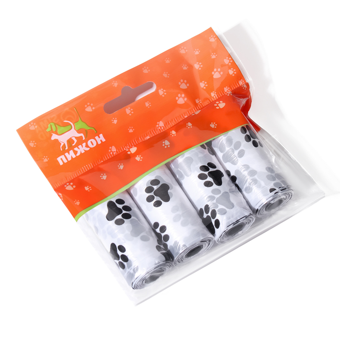 Пакеты для уборки за собаками, 4 рулона по 15 пакетов, 29×21 см, с печатью, белые 4 фото