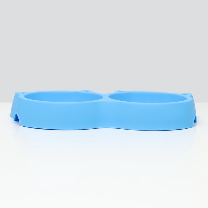Миска двойная «Кошка», 25×13×3.5 см, с прорезиненными ножками, пластик, синяя 4 фото