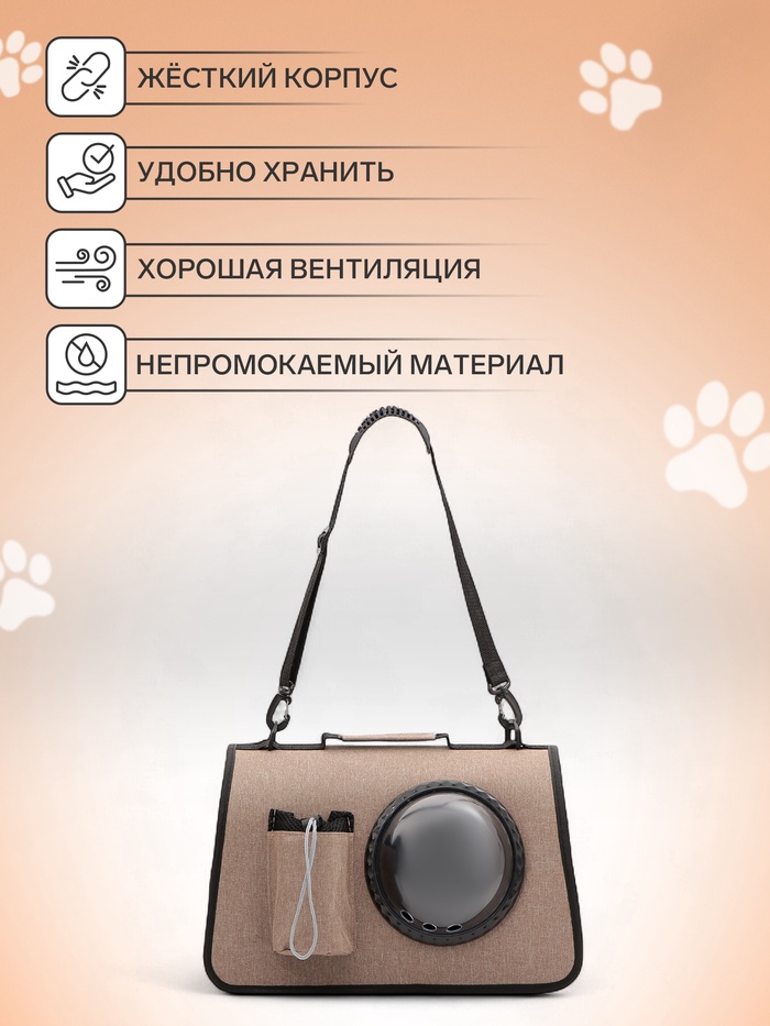 Сумка - переноска «Виши», размер S, 37×20×24 см, каркасная, коричневая 10 фото