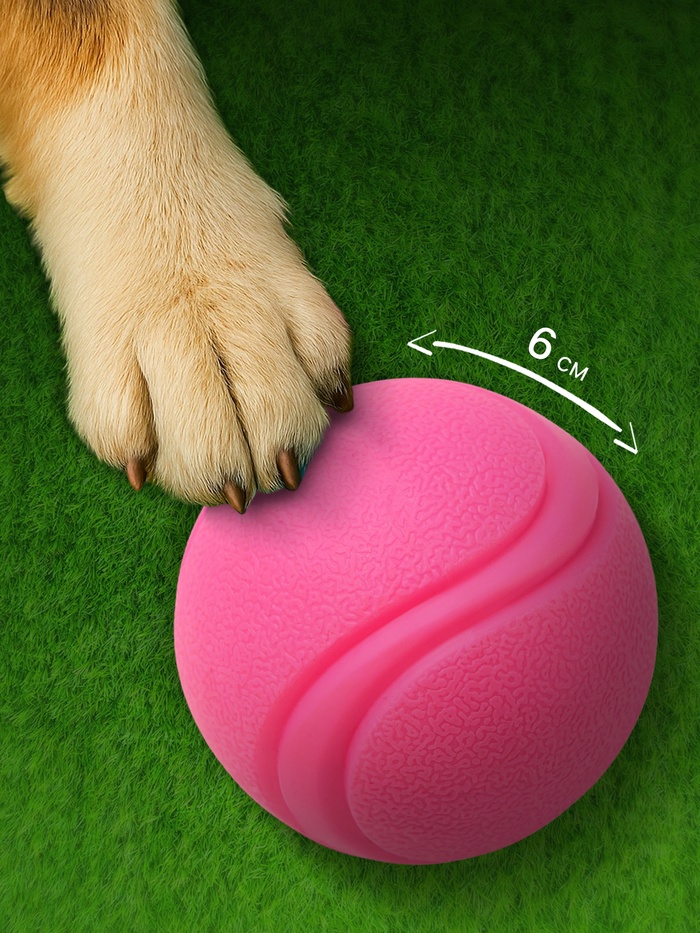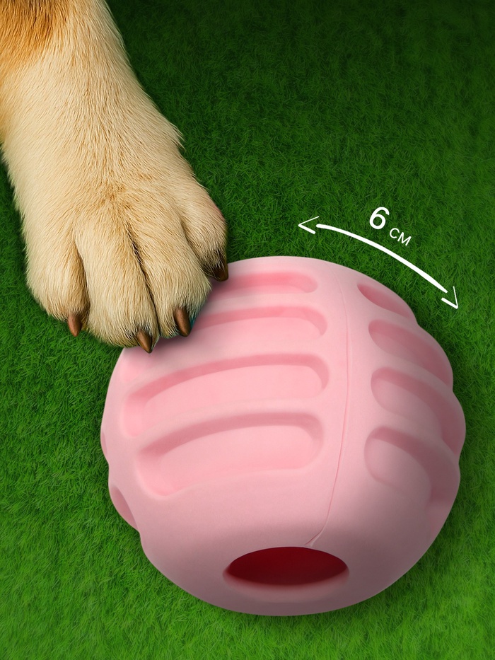 Мячик для собак, 6 см, цельнолитой, прыгучий, TPR, розовый 5 фото