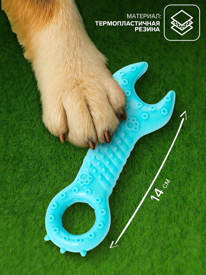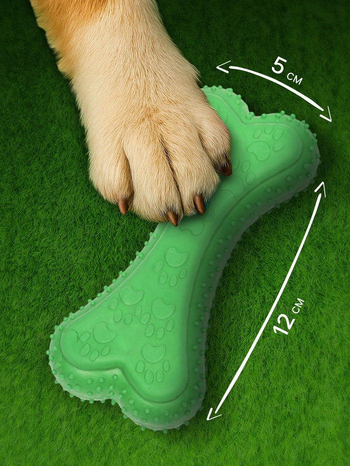 Жевательная игрушка для собак «Объемная кость с лапками», 12 с, TPR, зелёная 6 фото