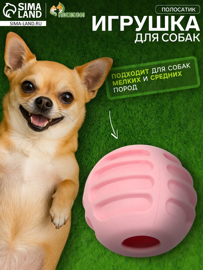Мяч для собак «Полосатик», 6 см, рифлёный, TPR, розовый 5 фото
