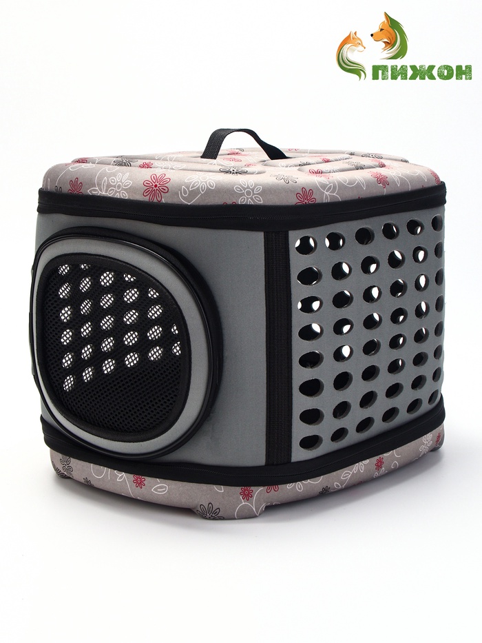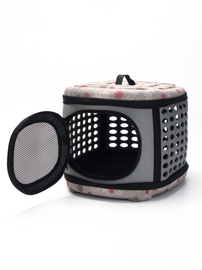 Рюкзак - переноска для кошек и собак, 37×37×25 см, сетка с кошкой, оксфорд, ПВХ, серый, жёлтый 4 фото