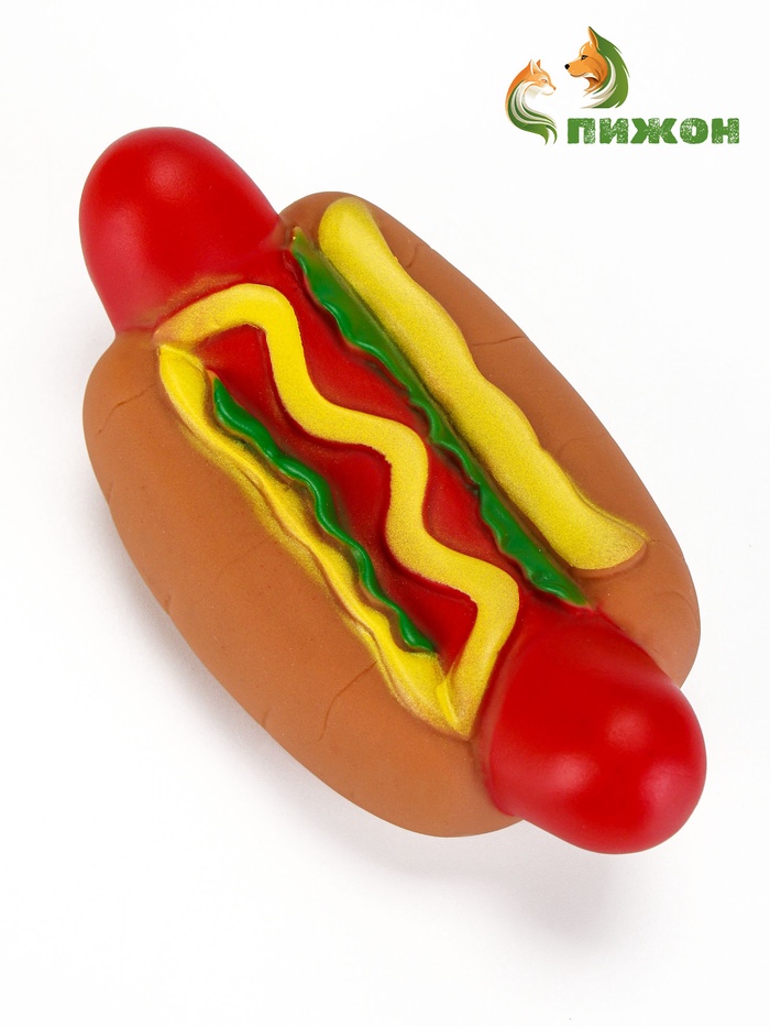 Игрушка для собак «Мощный Хот дог», пищащая, 13 см, винил, разноцветная 5 фото