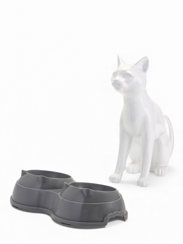 Миска двойная, 240 мл, 25×14×5 см, пластик, серая 5 фото