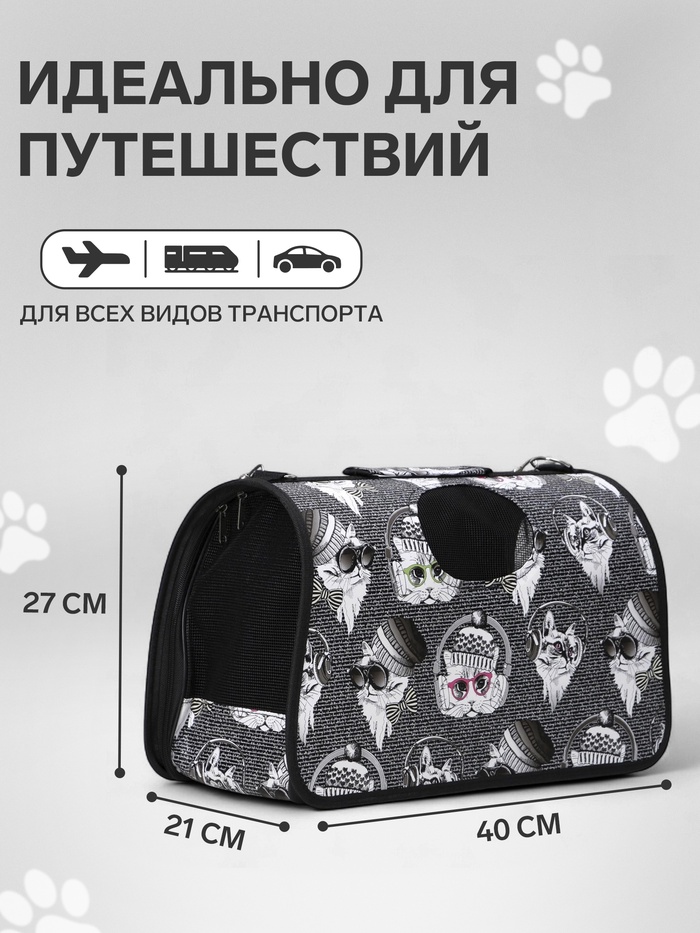 Сумка - переноска для животных «Зимние коты», размер M, 40×21×27 см 10 фото