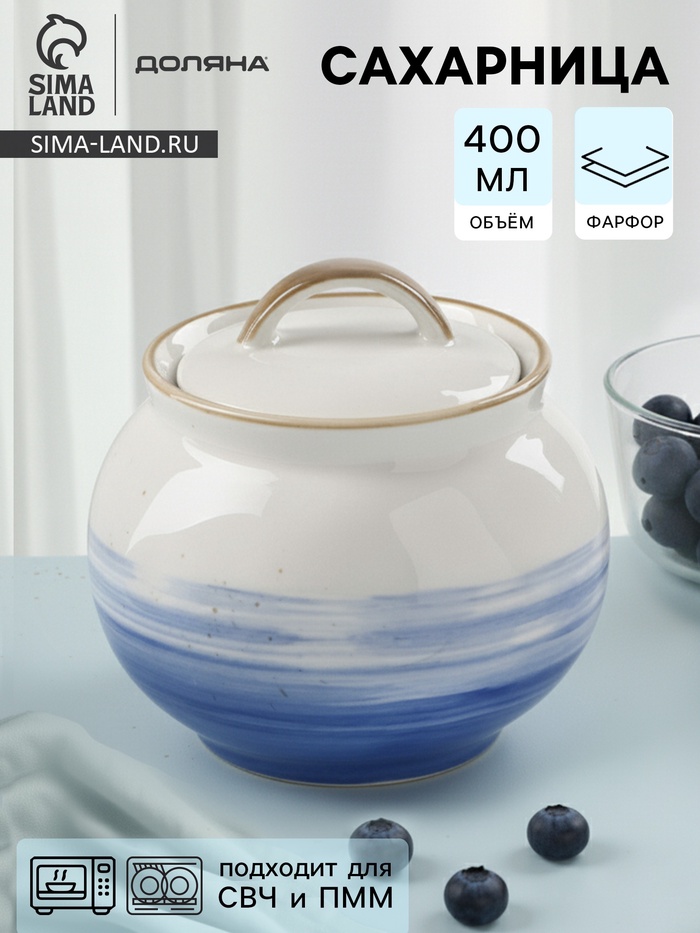Сахарница с крышкой Доляна «Космос», 400 мл, фарфор, синяя 7 фото