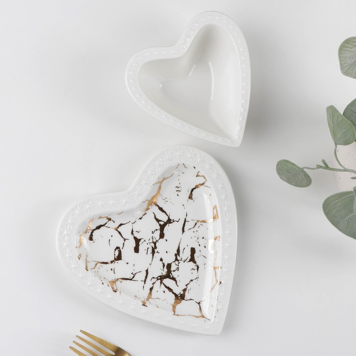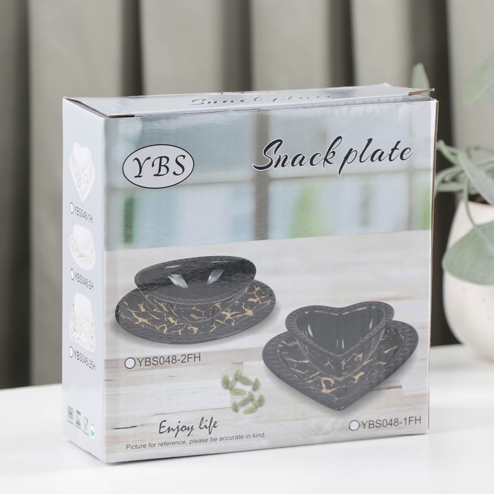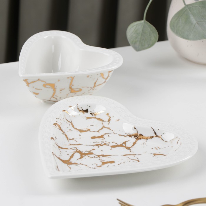 Набор керамический столовый «Марбл», 2 предмета: салатник 150 мл, блюдо 16.5×17×2 см, цвет белый 5 фото