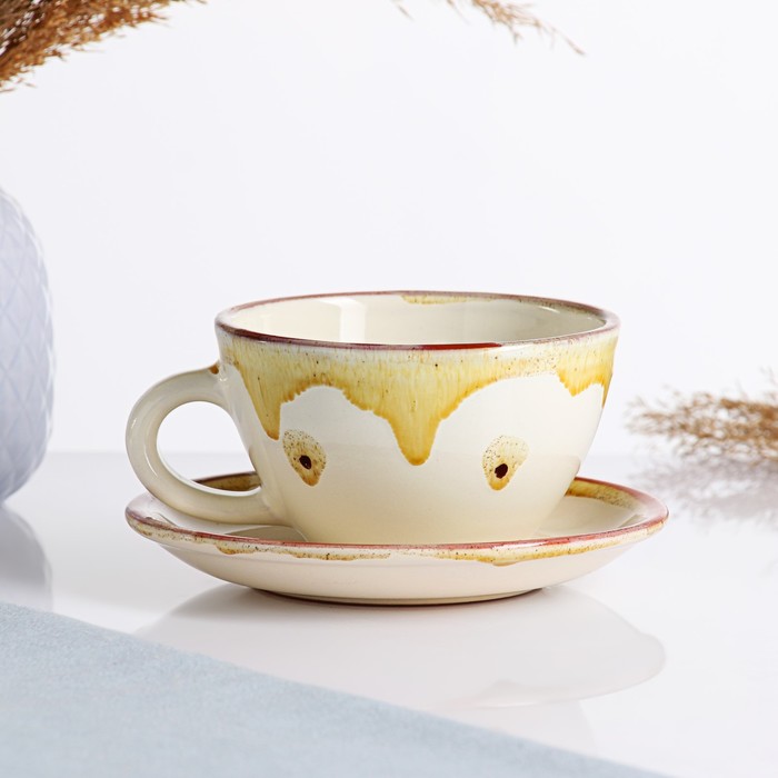 Чайная пара Псковский гончар «Карамель», 300 мл, керамика, белая 3 фото