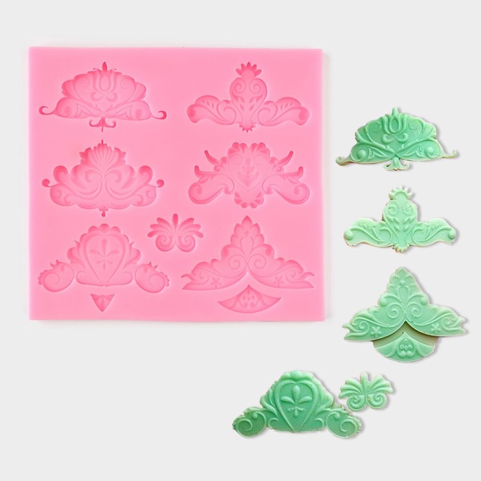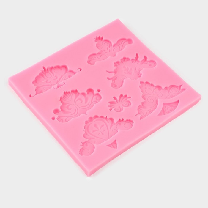 Молд для заливки «Вензеля», силикон, 13.6×12.6×0.8 см, розовый 5 фото