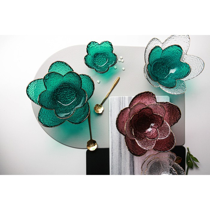 Салатник «Цветок», 60 мл, 9×4 см, стекло, изумрудный 7 фото