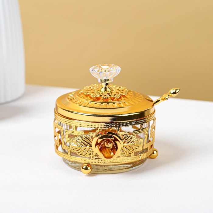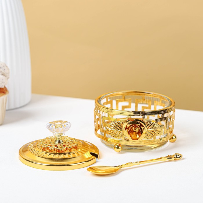 Сахарница «Роза» с ложкой, 200 мл, 9×10 см, металл, золотистая 4 фото