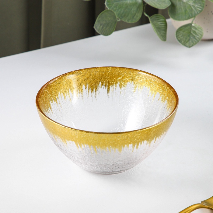 Салатник «Бурлеск», 600 мл, d=15 см, стекло, прозрачный, золотистый 8 фото