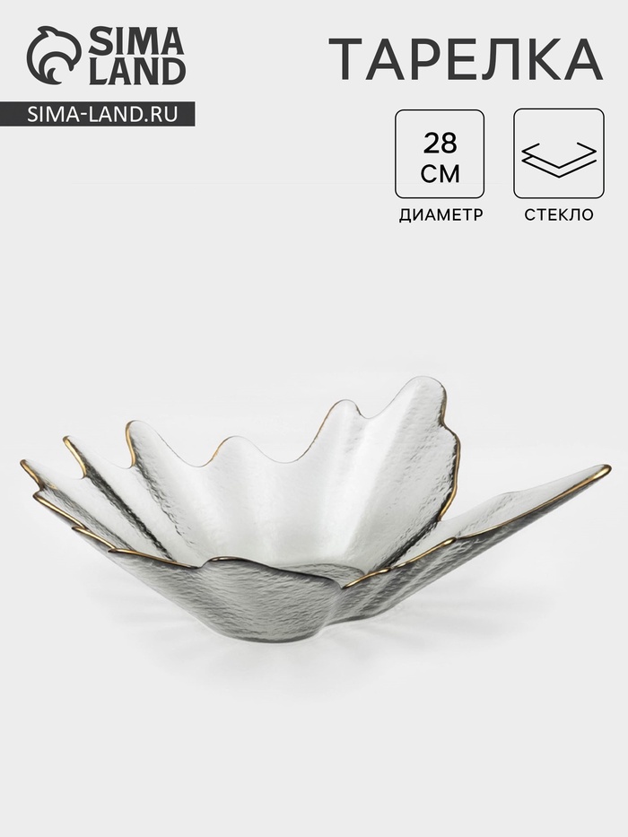 Тарелка «Сияние», d=33 см, стекло, окантовка золотистая 5 фото
