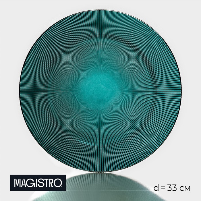 Тарелка Magistro «Эмеральд», d=27 см, с серебряной отводкой, стекло, бирюзовая 7 фото