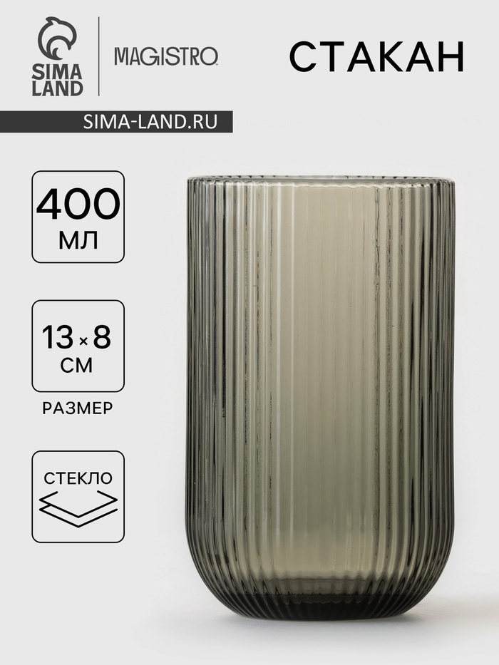 Стакан Magistro «Грани», 400 мл, 8×13 см, стекло, графитовый 9 фото