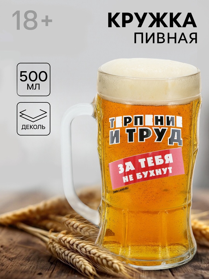 Кружка пивная с надписью «Терпение и труд», 500 мл, 18+ 6 фото