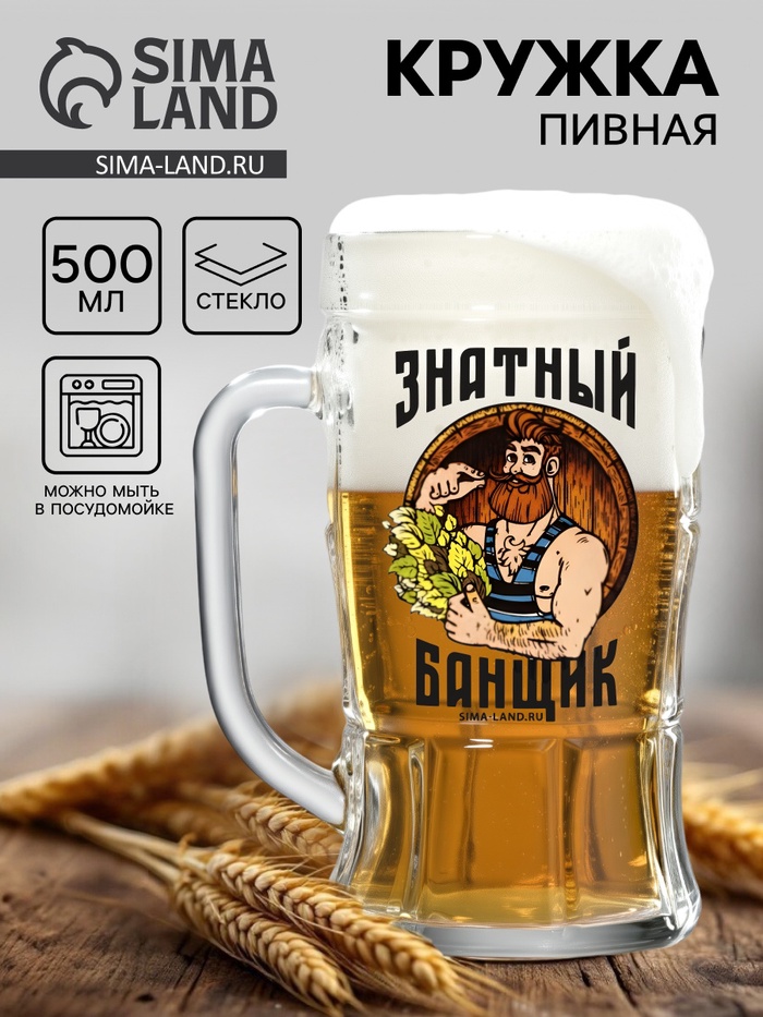 Кружка стеклянная пивная «Знатный банщик», 500 мл 4 фото