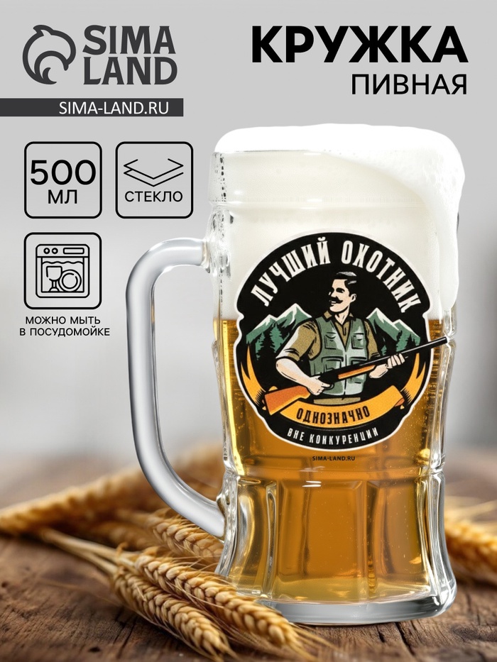 Кружка пивная стеклянная «Лучший охотник», 500 мл 3 фото