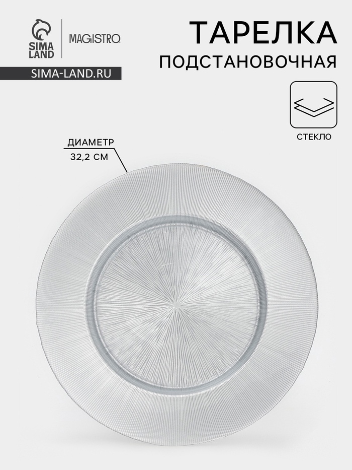 Тарелка подстановочная Magistro «Иней. Серебро», 32.5×2.5 см, стекло, серебристая 4 фото