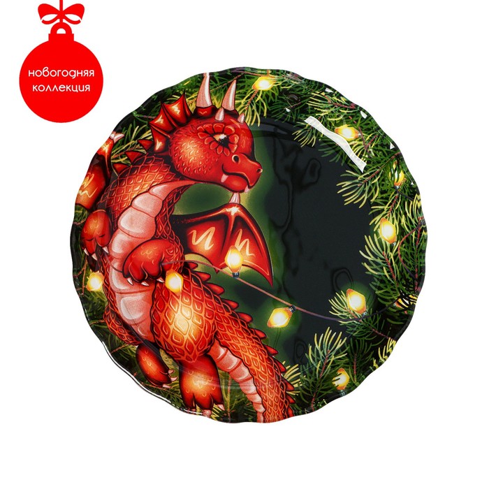 Блюдо стеклянное сервировочное Доляна «Ёлочная игрушка. Дракоша», 18.2×15.5 см 4 фото