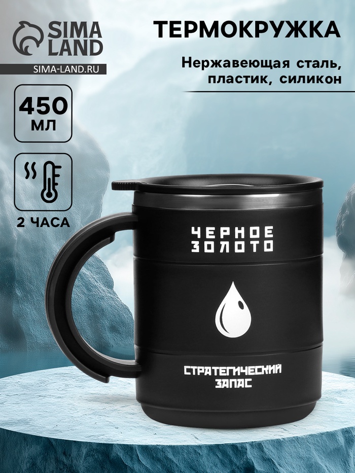 Термос Мастер К «Тропа», 1.2 л, с кружкой, сохраняет тепло 24 ч, нержавеющая сталь, чёрный 3 фото