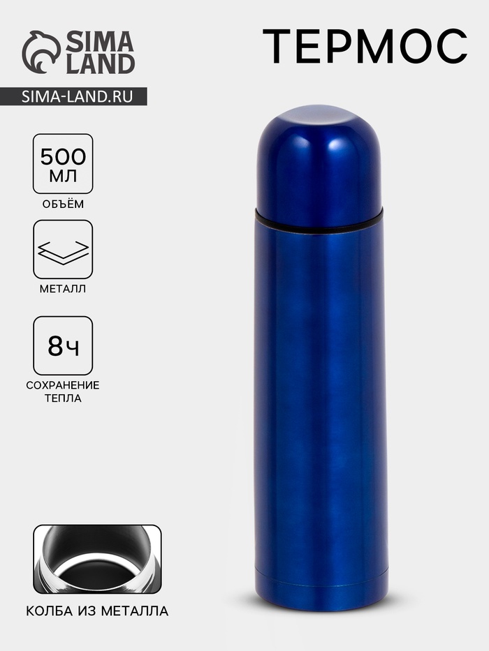 Термос, Гильза, 500 мл, с кружкой, сохраняет тепло до 8 часов, нержавеющая сталь, синий 6 фото