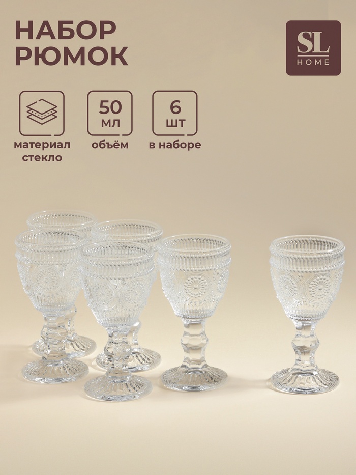 Рюмки SL Home «Ларго», 50 мл, 5×10.5 см, набор 6 шт., стекло, прозрачные 8 фото