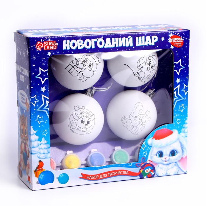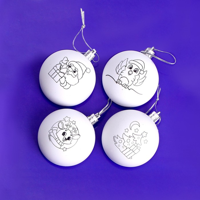 Ёлочные шары под раскраску на новый год «Чудесная история», краски, 4 шт., набор для творчества 5 фото