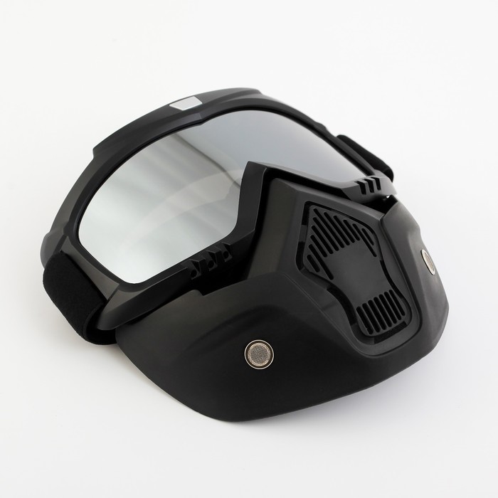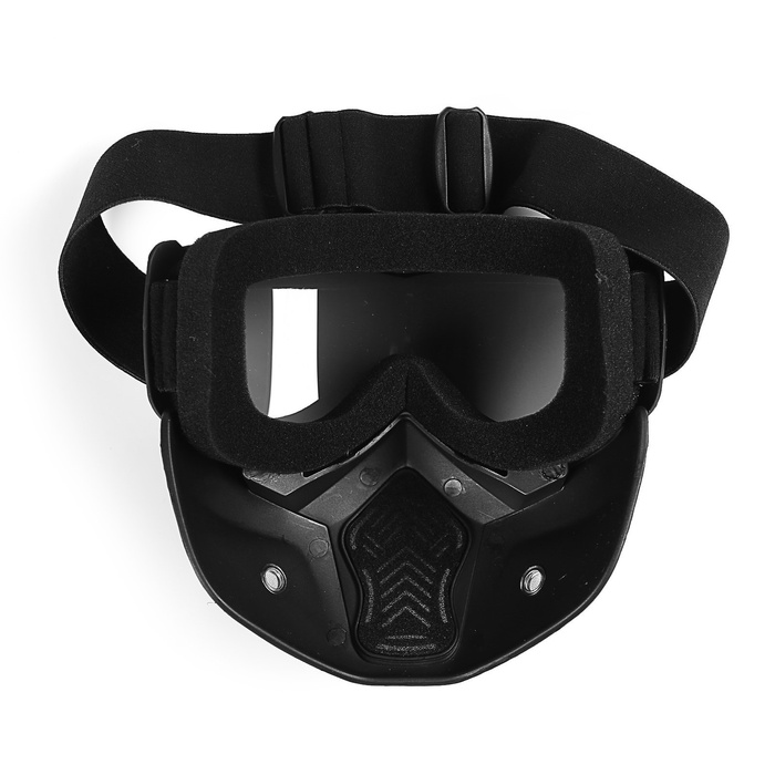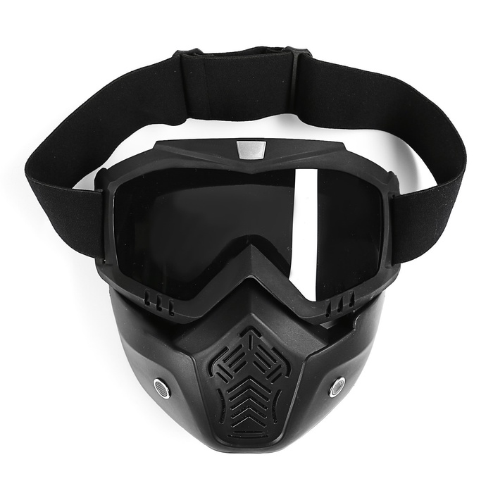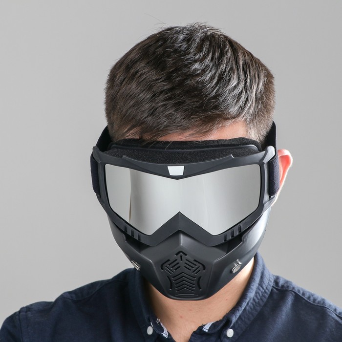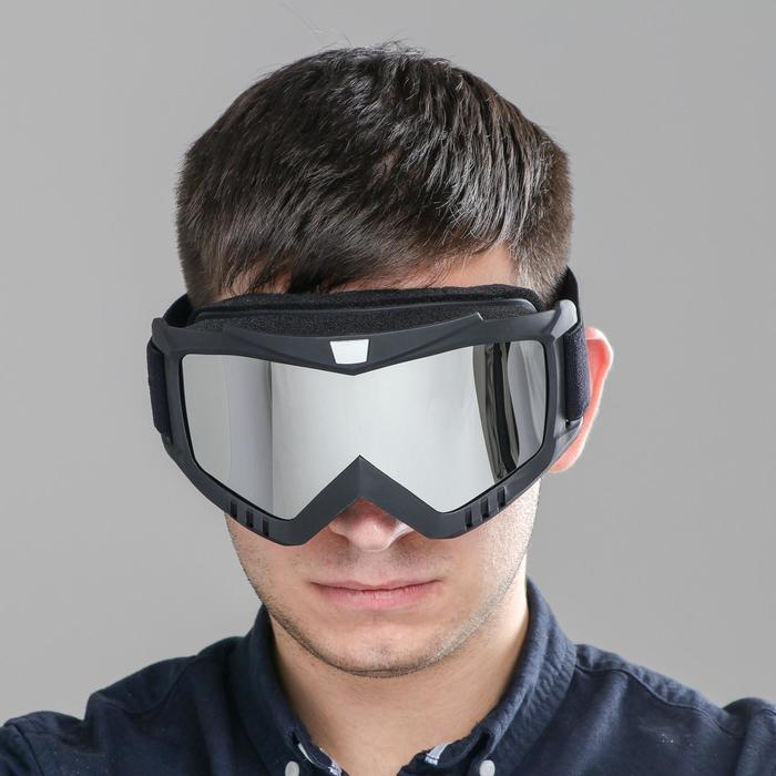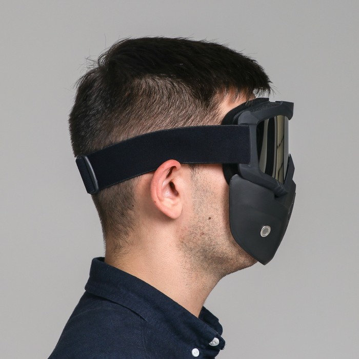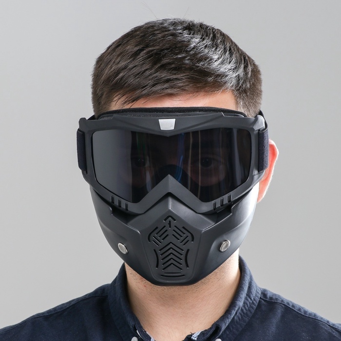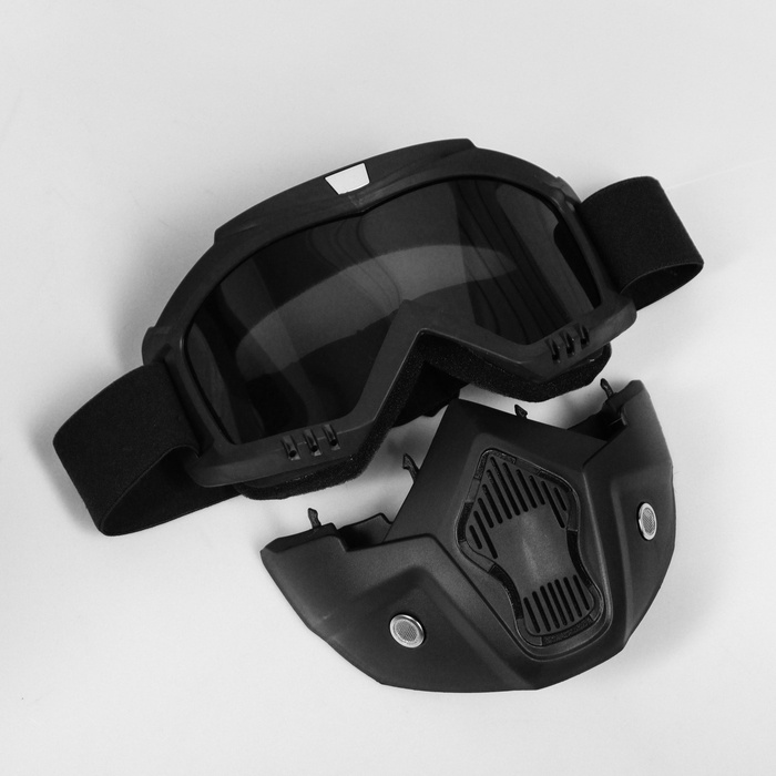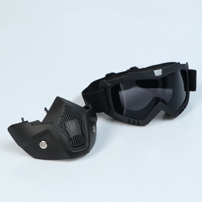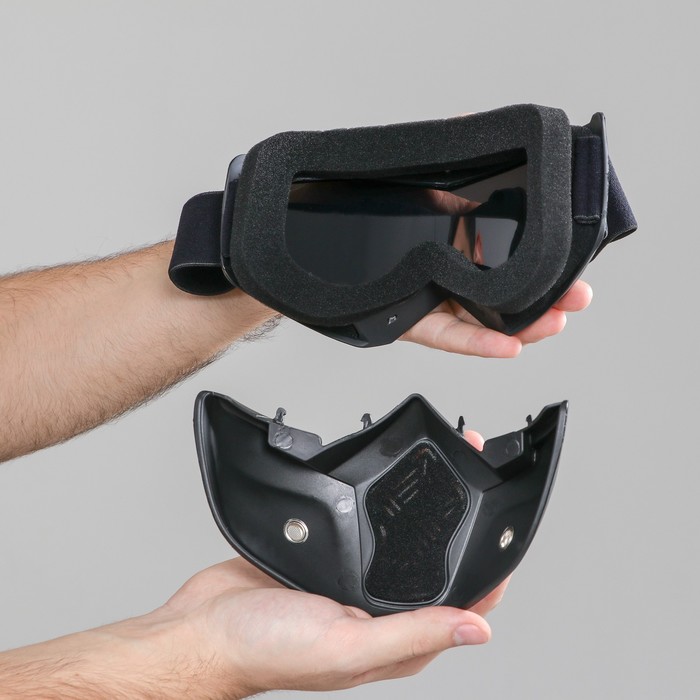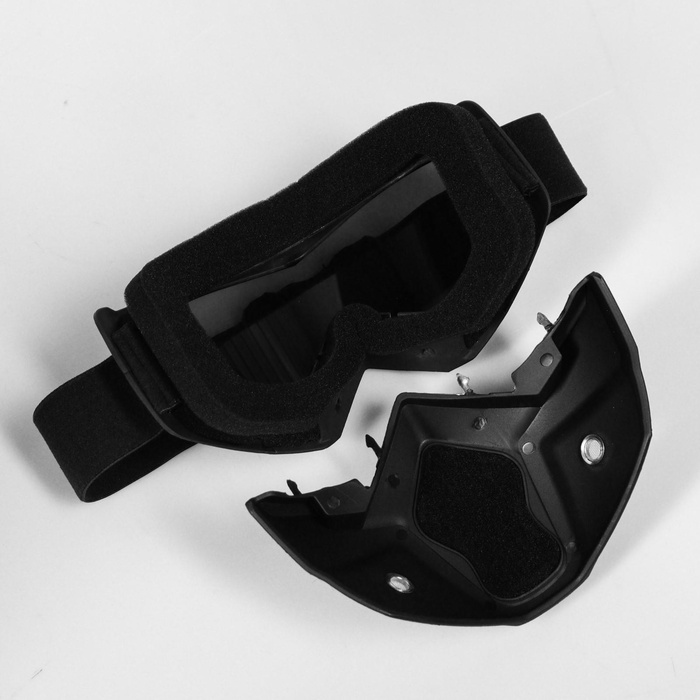 Очки-маска для езды на мототехнике, разборные, стекло с затемнением, черные 10 фото