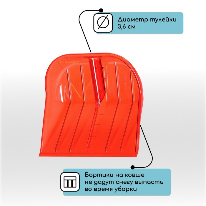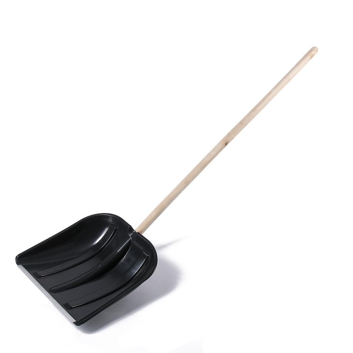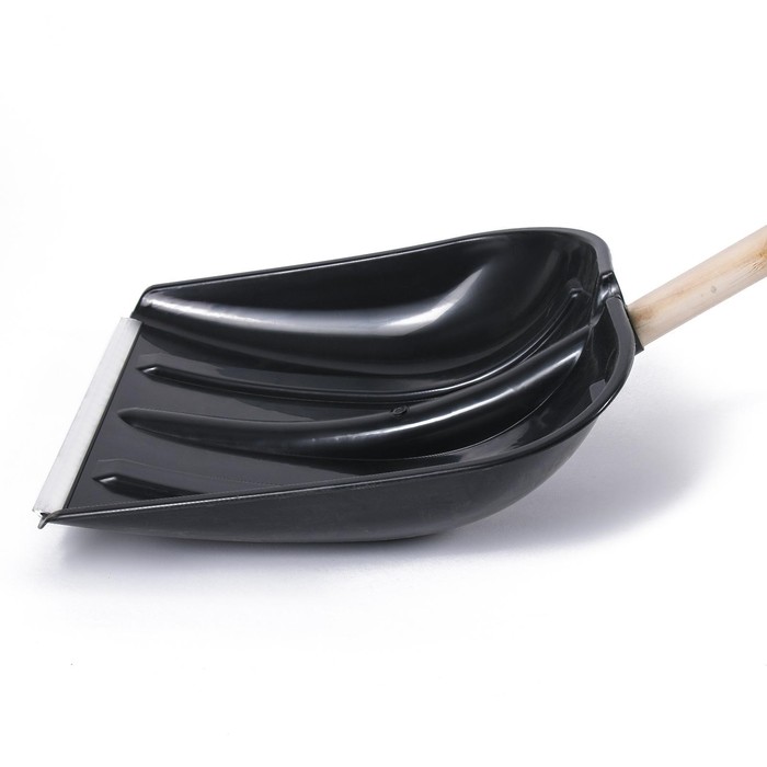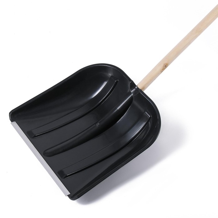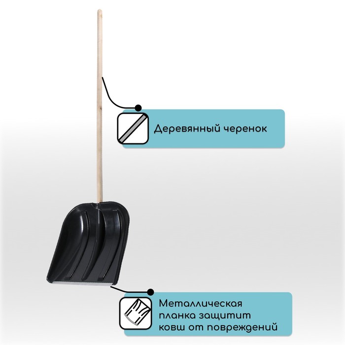 Лопата для уборки снега, пластиковый ковш 410×415 мм, металлическая планка, деревянный черенок, с ручкой 9 фото