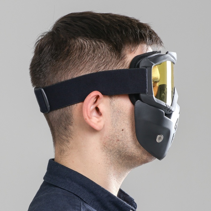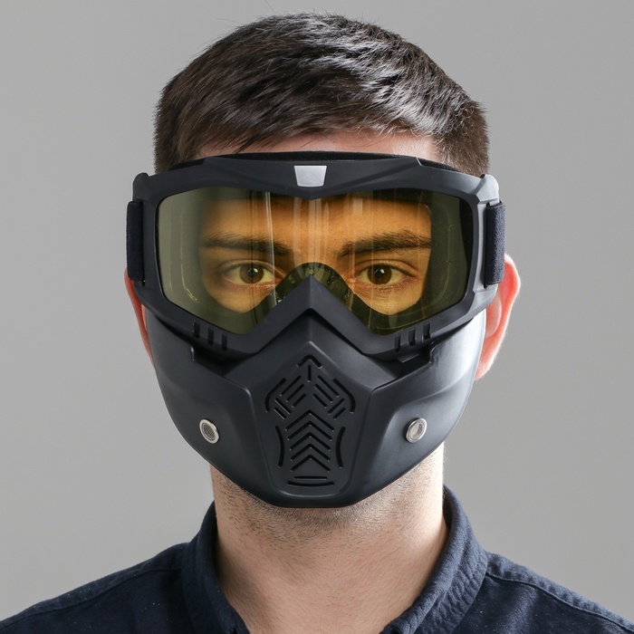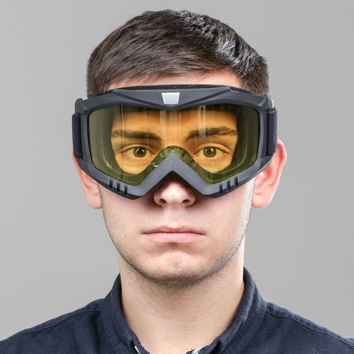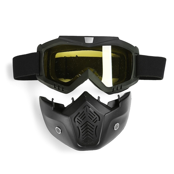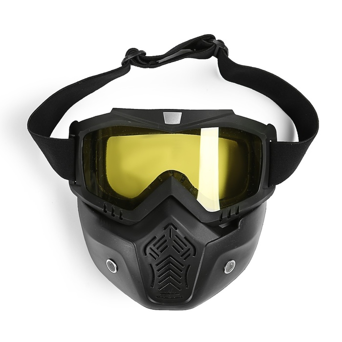 Очки-маска для езды на мототехнике, разборные, стекло желтое, цвет черный 8 фото