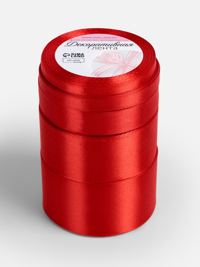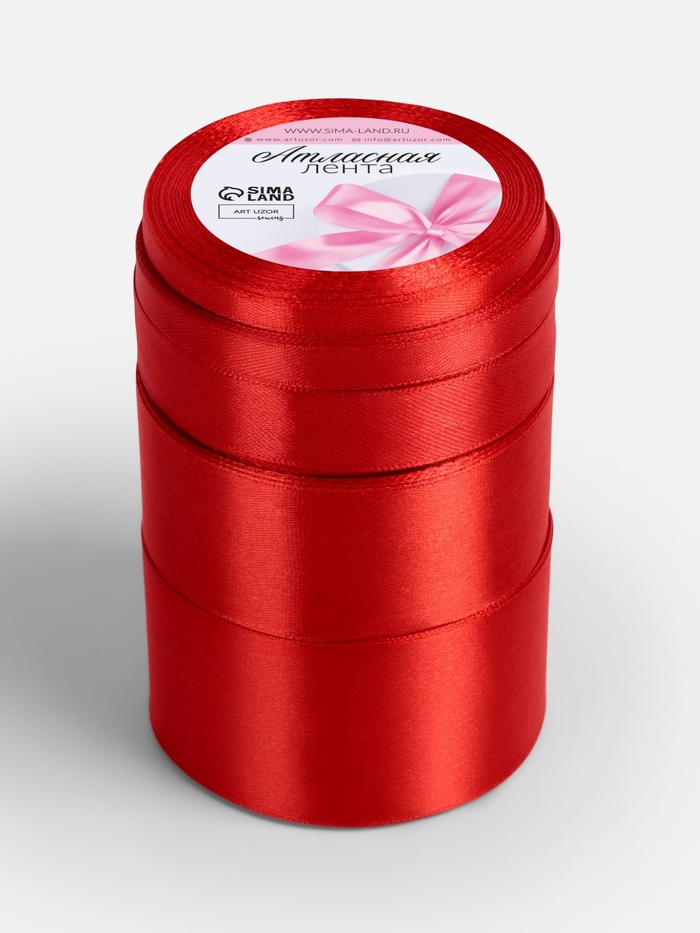 Атласная лента, набор 5 шт., 6/10/20/40/50 мм, 23±1 м, красная №26 6 фото