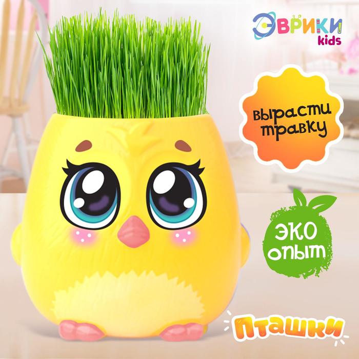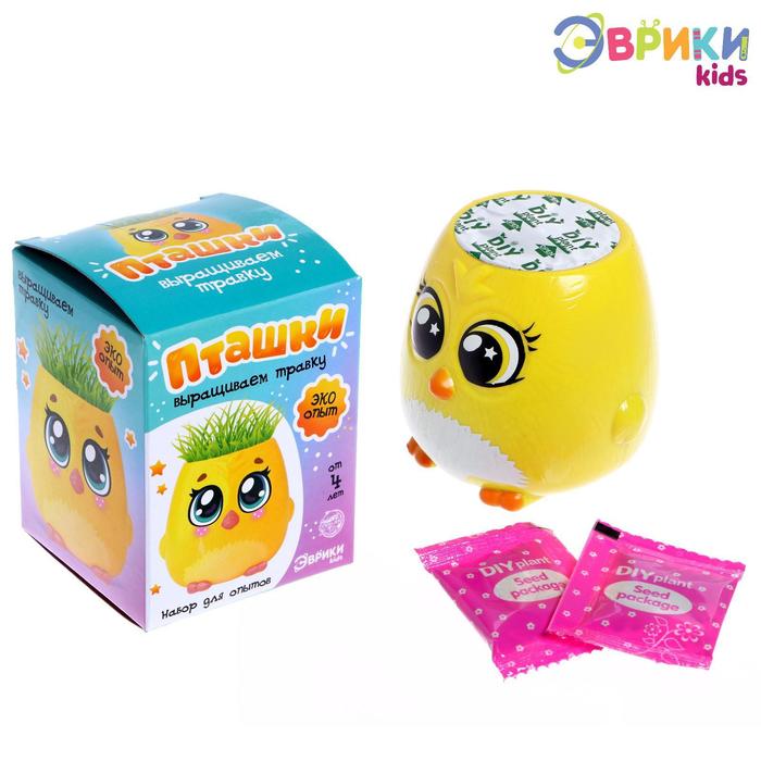Набор для опытов, для детей «Пташки, выращиваем травку», растение в жёлтом горшочке 5 фото