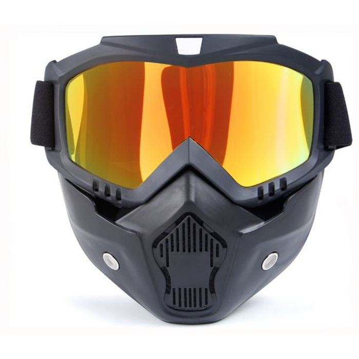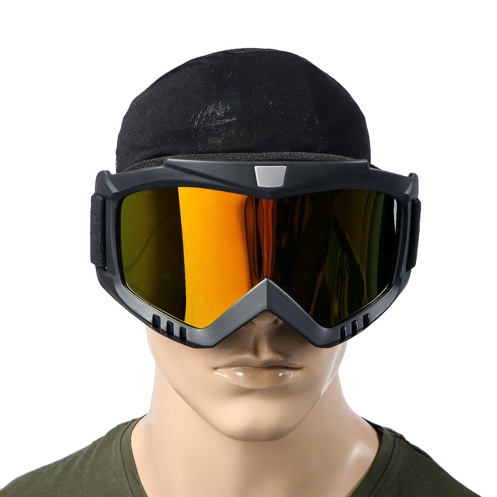 Очки-маска для езды на мототехнике, разборные, стекло золотой хром, черные 9 фото