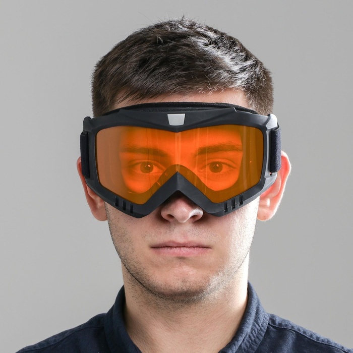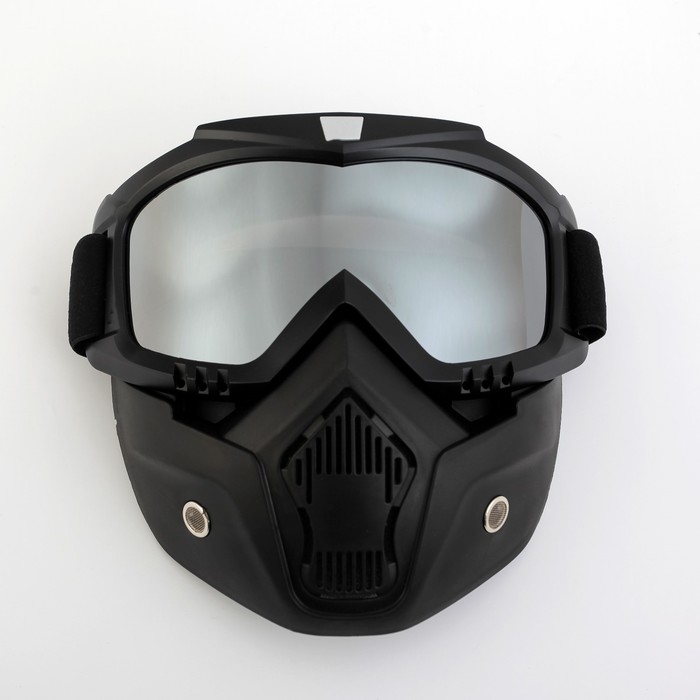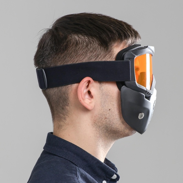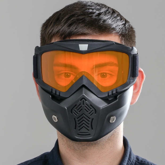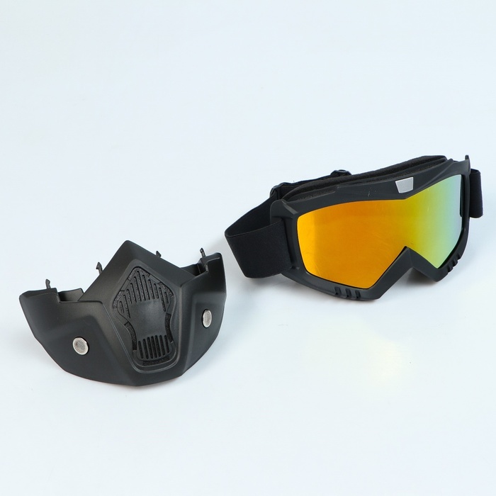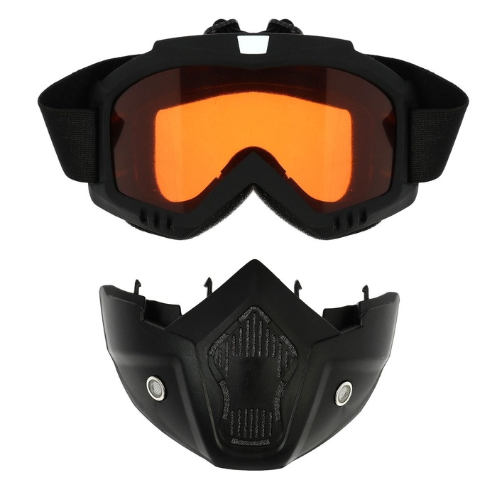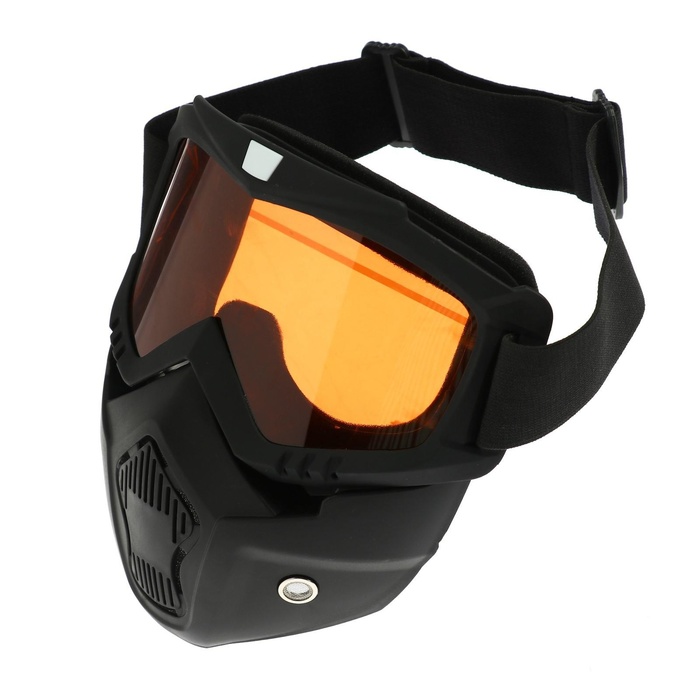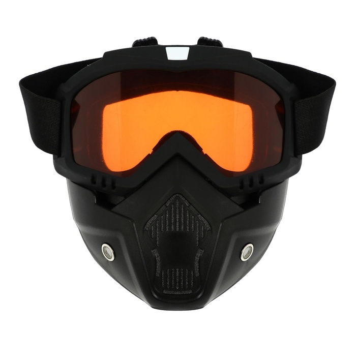 Очки-маска для езды на мототехнике, разборные, стекло оранжевый хром, чёрные 8 фото