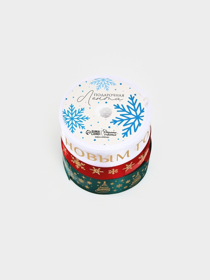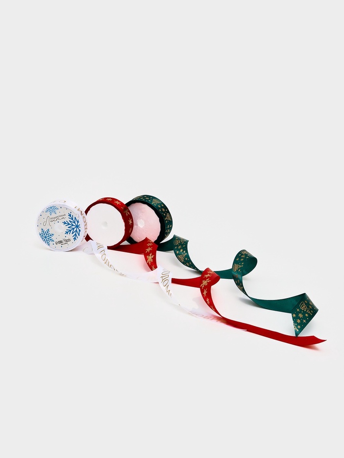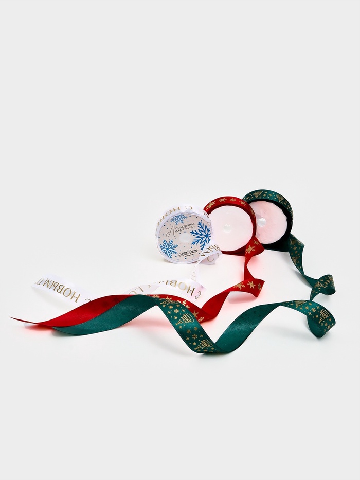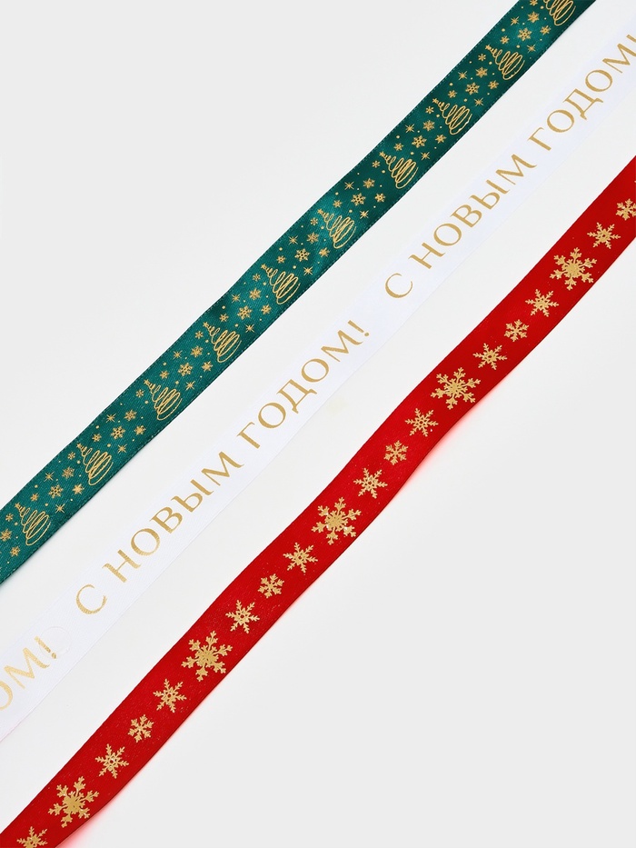 Набор атласных лент, 3 шт., «С Новым годом», 2 см × 5 м, тиснение 8 фото