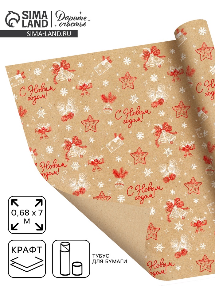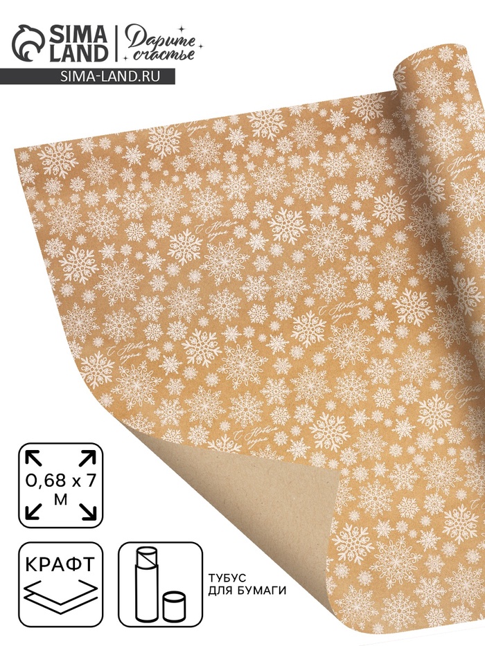 Бумага в тубусе крафтовая в рулоне «Снежинки», 0.68 × 7 м 6 фото