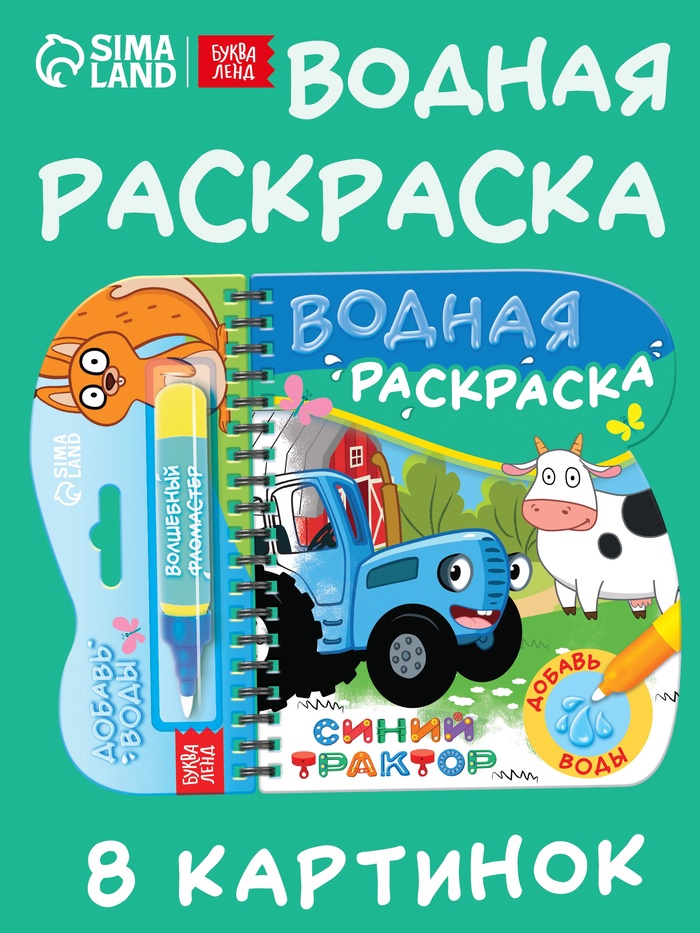 Книжка-раскраска «Рисуем водой», Синий трактор 6 фото