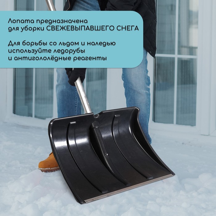 Лопата для уборки снега, пластиковый ковш 480×360 мм, алюминиевая планка, алюминиевый черенок, «Циклон» 10 фото