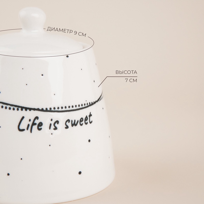 Сахарница SL Home «Милый дом», 180 мл, 9×7 см, фарфор, белая 8 фото