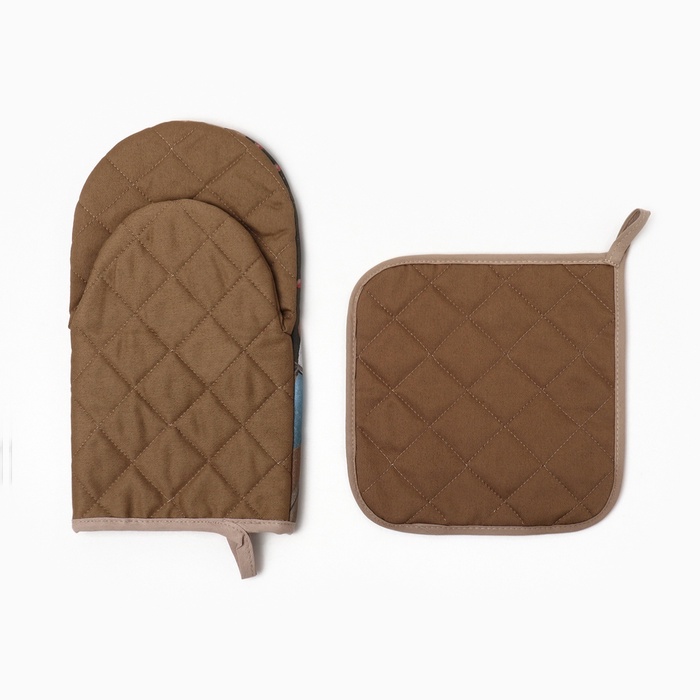 Набор кухонный «Этель» Flower herbarium: варежка 20×27 см, прихватка 19×19 см, 100% хлопок, 250 г/м² 6 фото