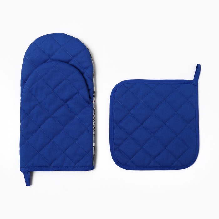 Набор кухонный «Этель» Home, чёрный, варежка-прихватка 18×29 см, прихватка 19×19 см,100% хлопок 6 фото
