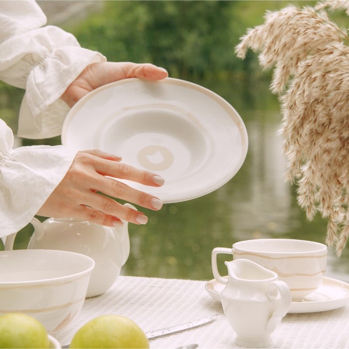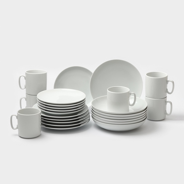 Набор фарфоровой посуды «Классический», 24 предмета: тарелка плоская d=17.5 см, d=20 см, тарелка глубокая 700 мл, d=20 см, кружка 300 мл 10 фото