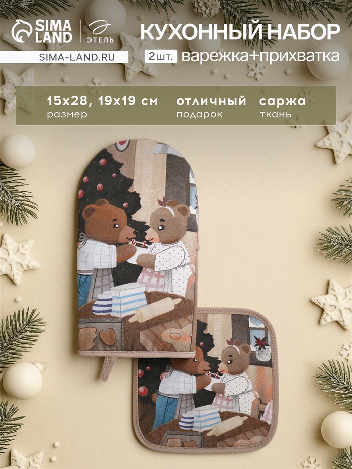 Набор подарочный «Этель» Bears, варежка 15×28 см, прихватка 19×19 см, хлопок 100% 6 фото