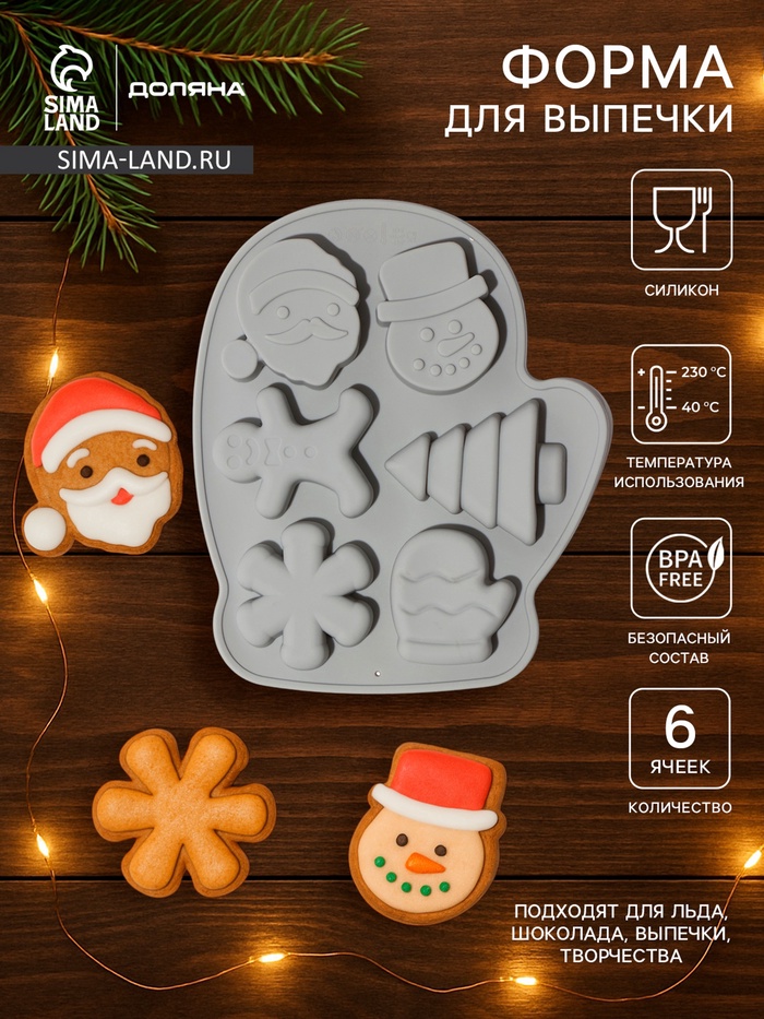Форма для выпечки новогодняя Доляна «Новогодняя варежка», силикон, 6 ячеек, 24×20.5×2.5 см, серая 8 фото