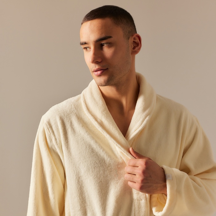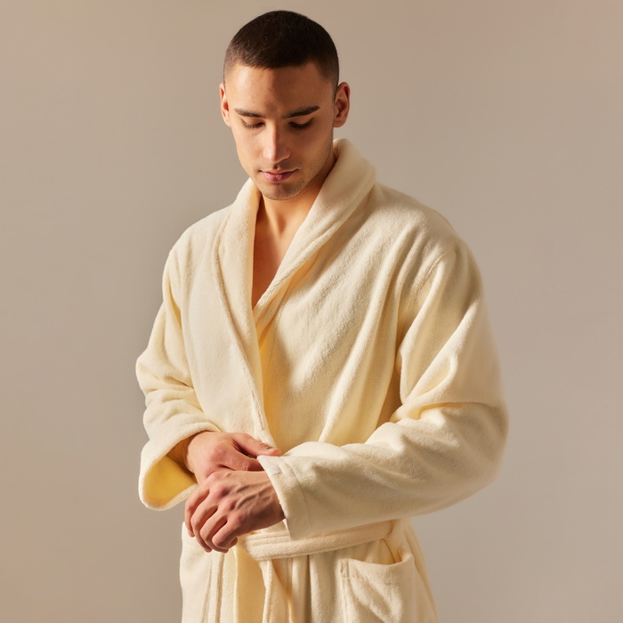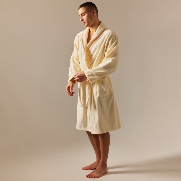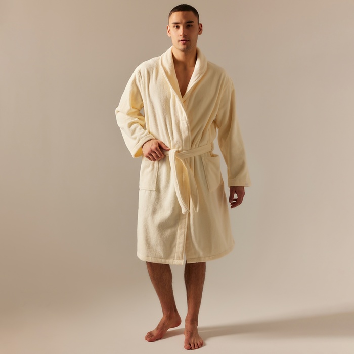Халат махровый мужской SL HOME: Basic «Айвори», размер M, хлопок 100%, молочный 10 фото