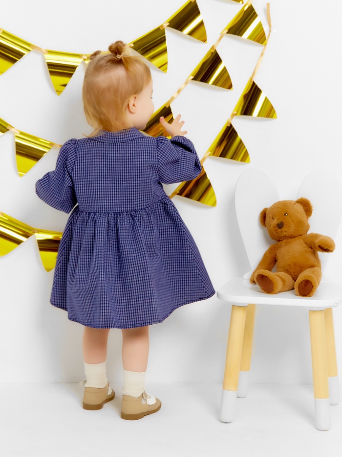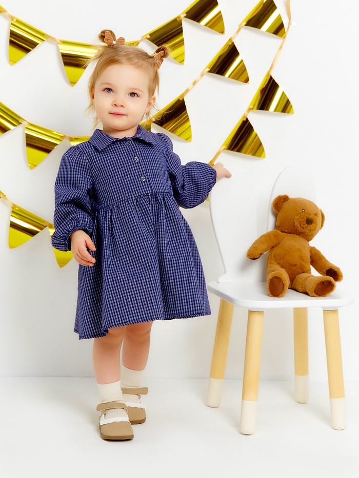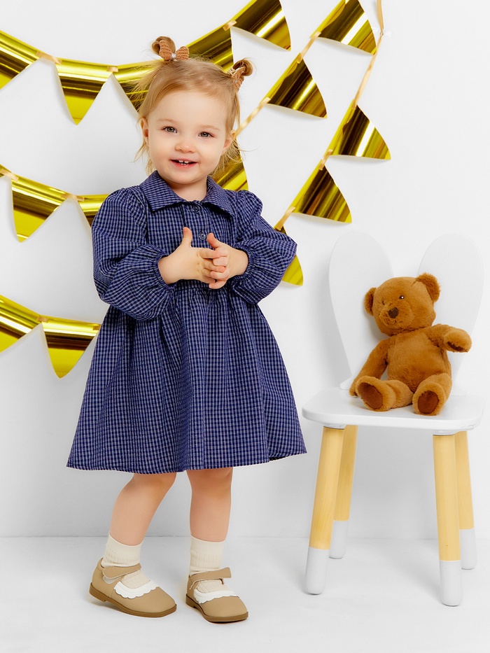 Платье для девочки «Крошка Я. Клетка», рост 86-92 см, синее 9 фото