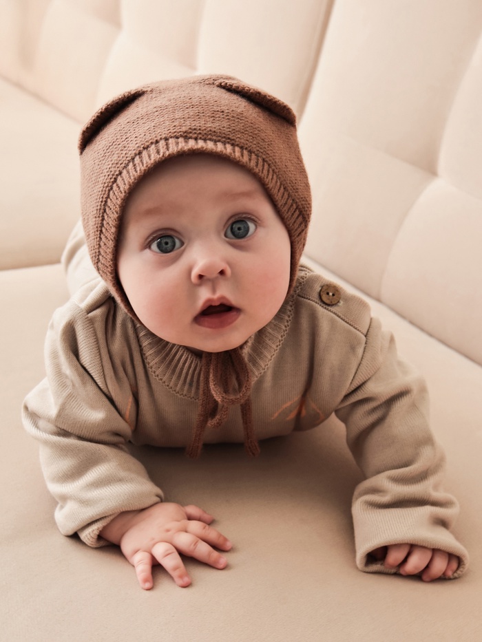 Шапка для малышей «Крошка Я», размер 48-50, бежевая 3 фото