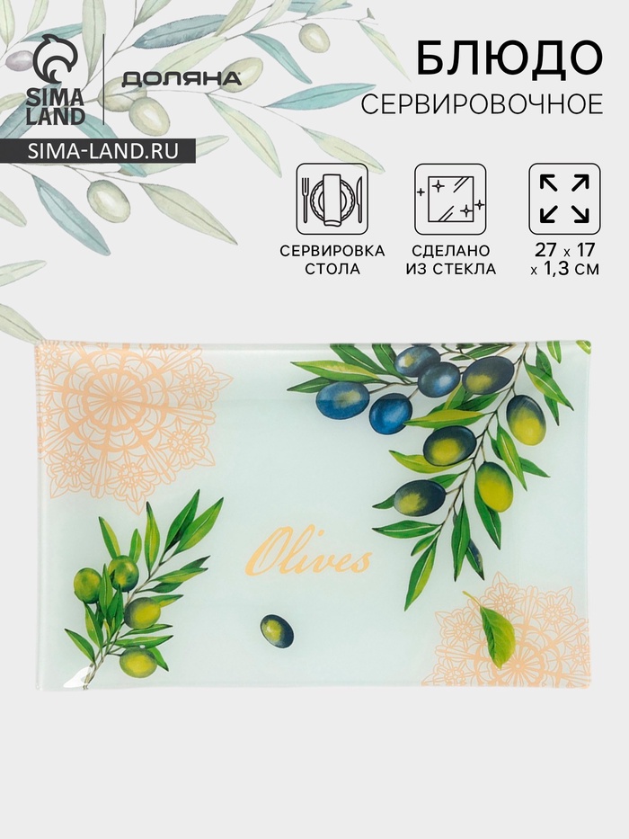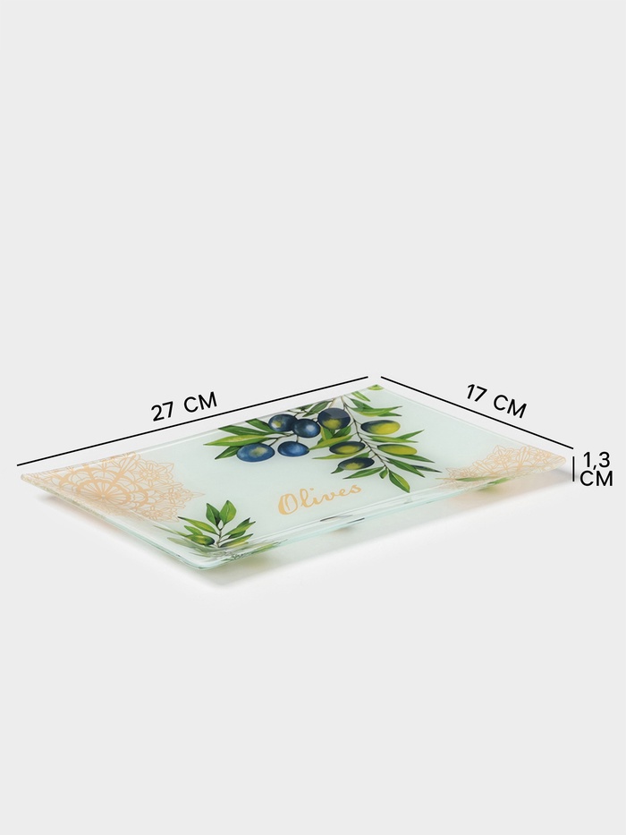 Блюдо сервировочное Доляна «Олива», 27×17×1.7 см, стекло, рисунок 3 фото